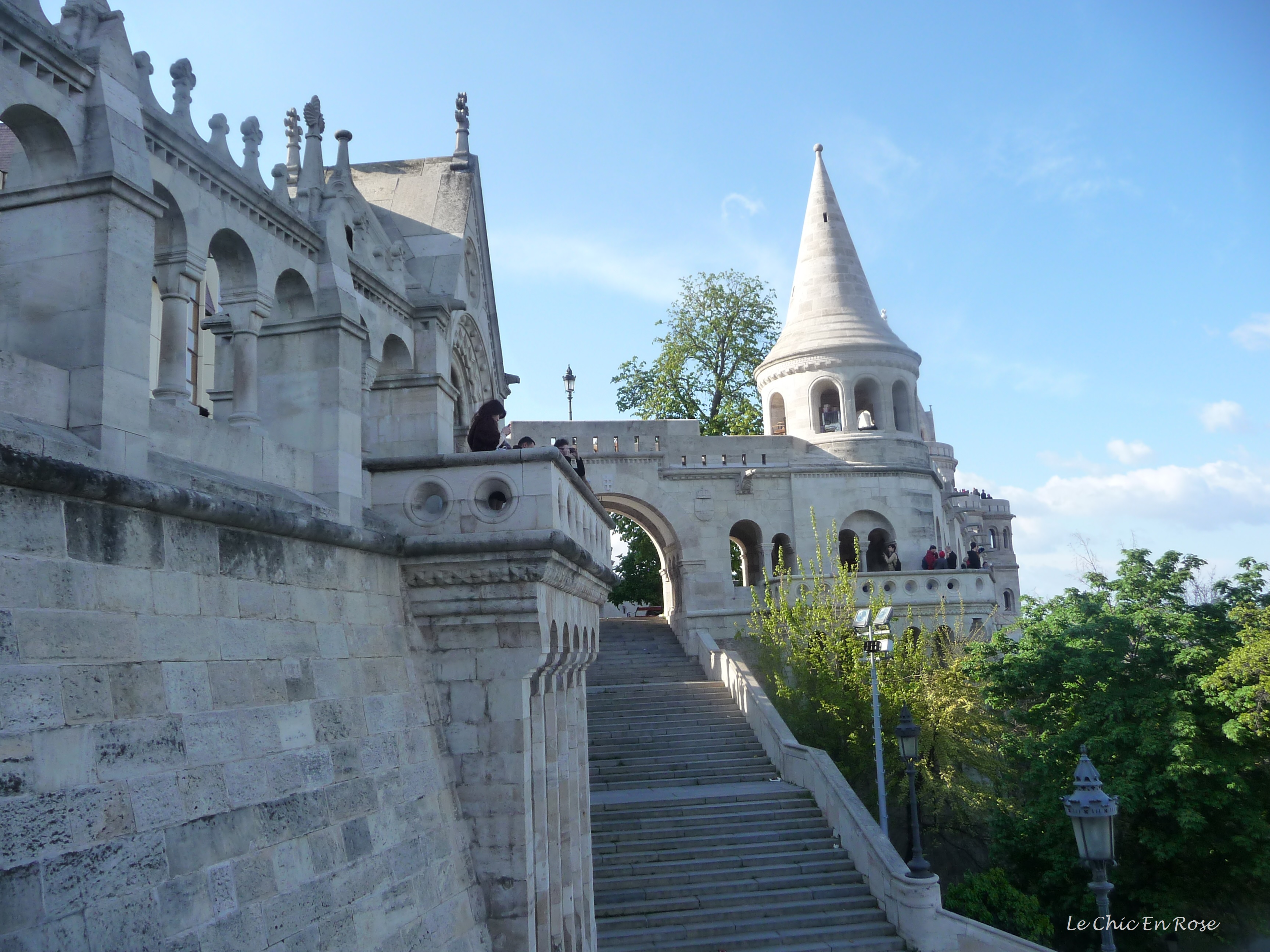 If you remember Monsieur Le Chic and I were initially confused when we got off the funicular, as to whether we were in fact at the Castle! Hence we wandered off along the pretty narrow streets of Buda, which led us to yet another lookout point – this time at Fisherman’s Bastion. Just as well that by this stage I’d purchased a local guide book! With it’s pretty pale grey turrets and towers it would have been quite easy to think that this was the real Buda Castle!