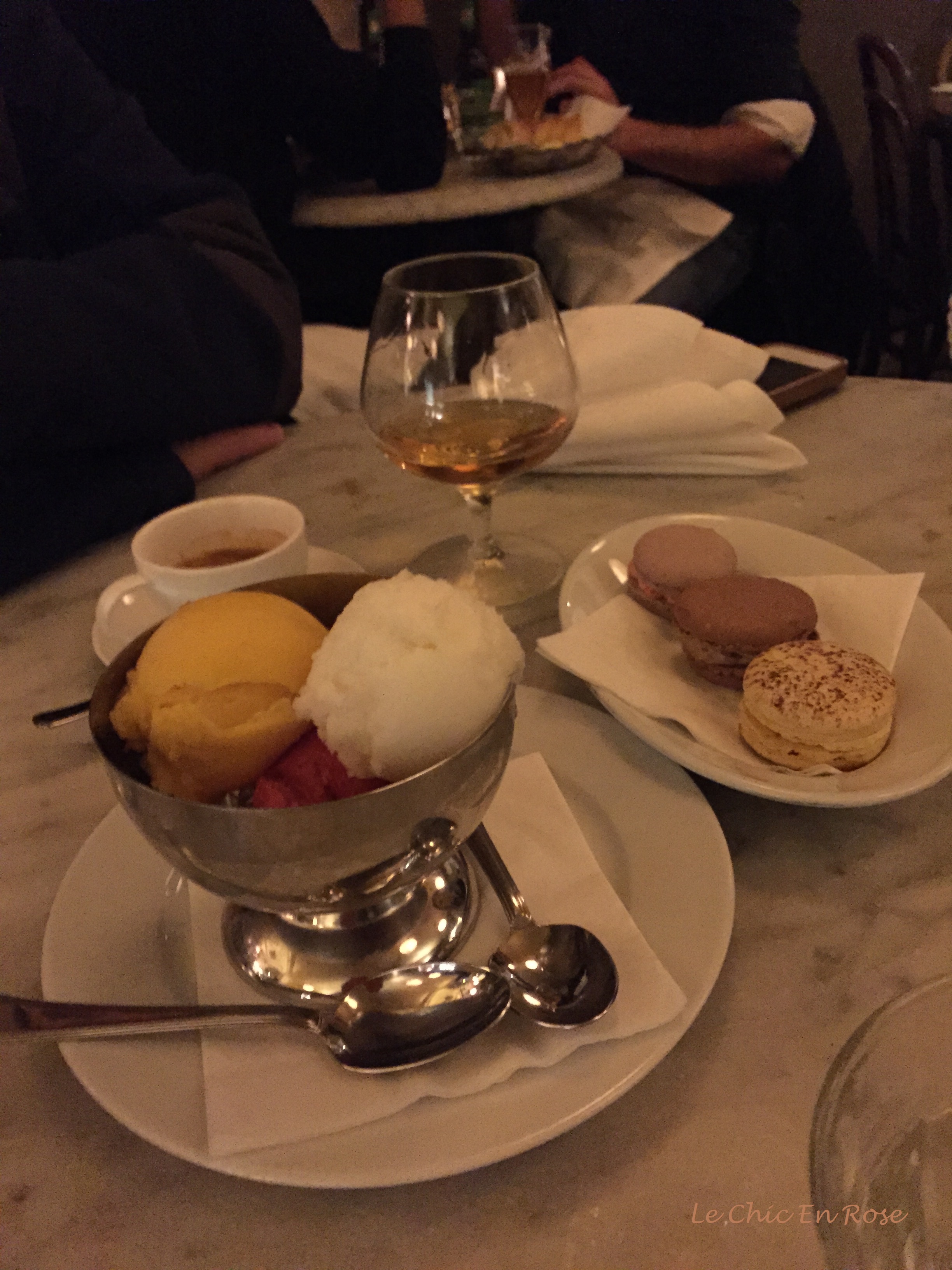 Macaroons and sorbets followed by coffee and calvados - desserts at Cafe Boheme!