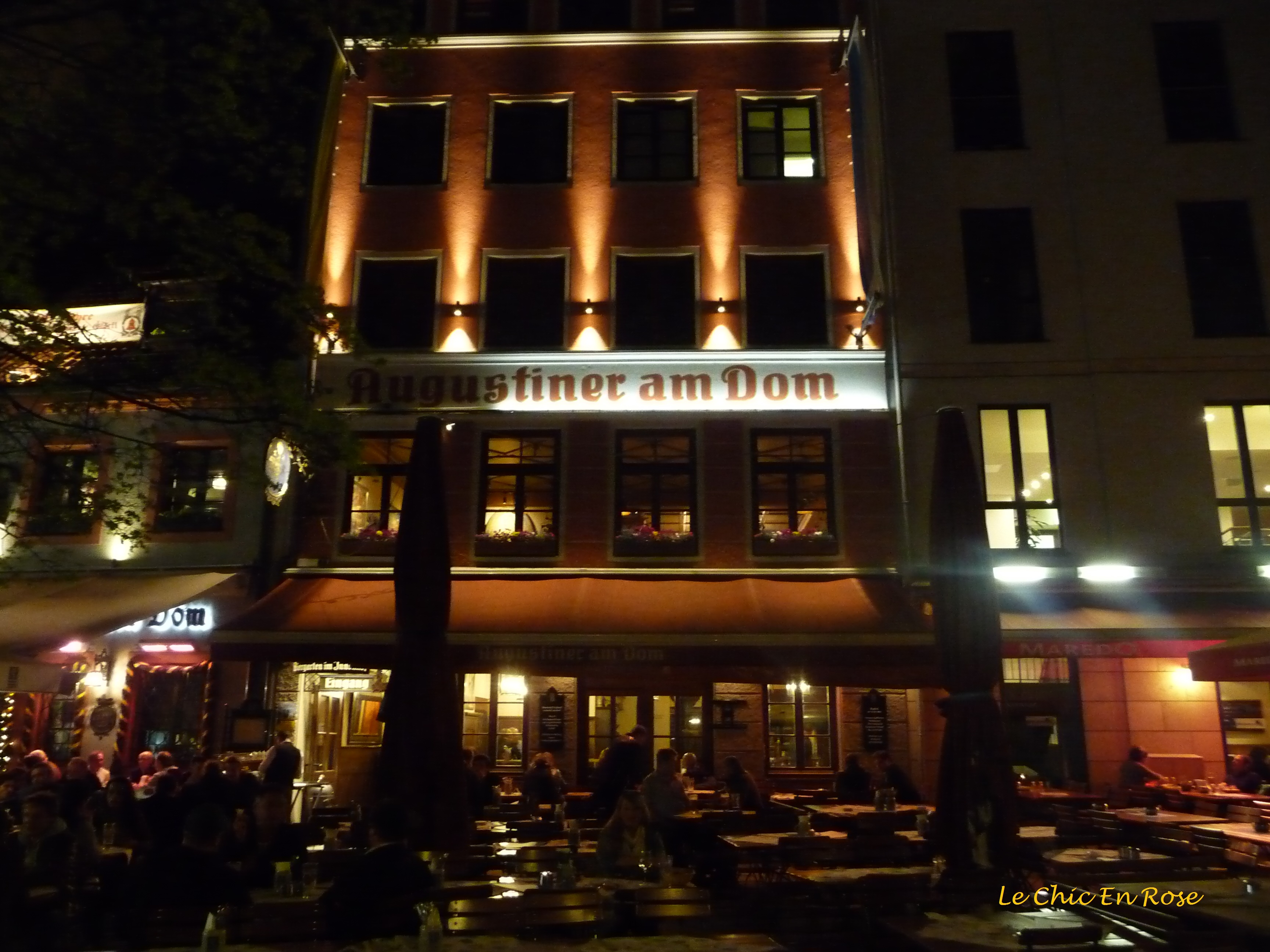 The famous Hofbrauhaus fronted on to the street at the back of our hotel, the Platzl (more details from my earlier post of the Platzl Hotel Munich here).  Mlle, our daughter, had a room at the back of the hotel, which was more prone to noise than ours towards the front and there was one especially loud and raucous evening where the revellers partied well into the night – fortunately it didn’t faze Mlle! We thought we should check the Hofbrau out one evening for ourselves but there was not a table to be had anywhere, it was absolutely packed with tourists and we didn’t feel inclined to wait around. Instead we headed off to Augustiner am Dom, which I’d spotted when I went round the Frauenkirche (cathedral) a couple of days earlier.
