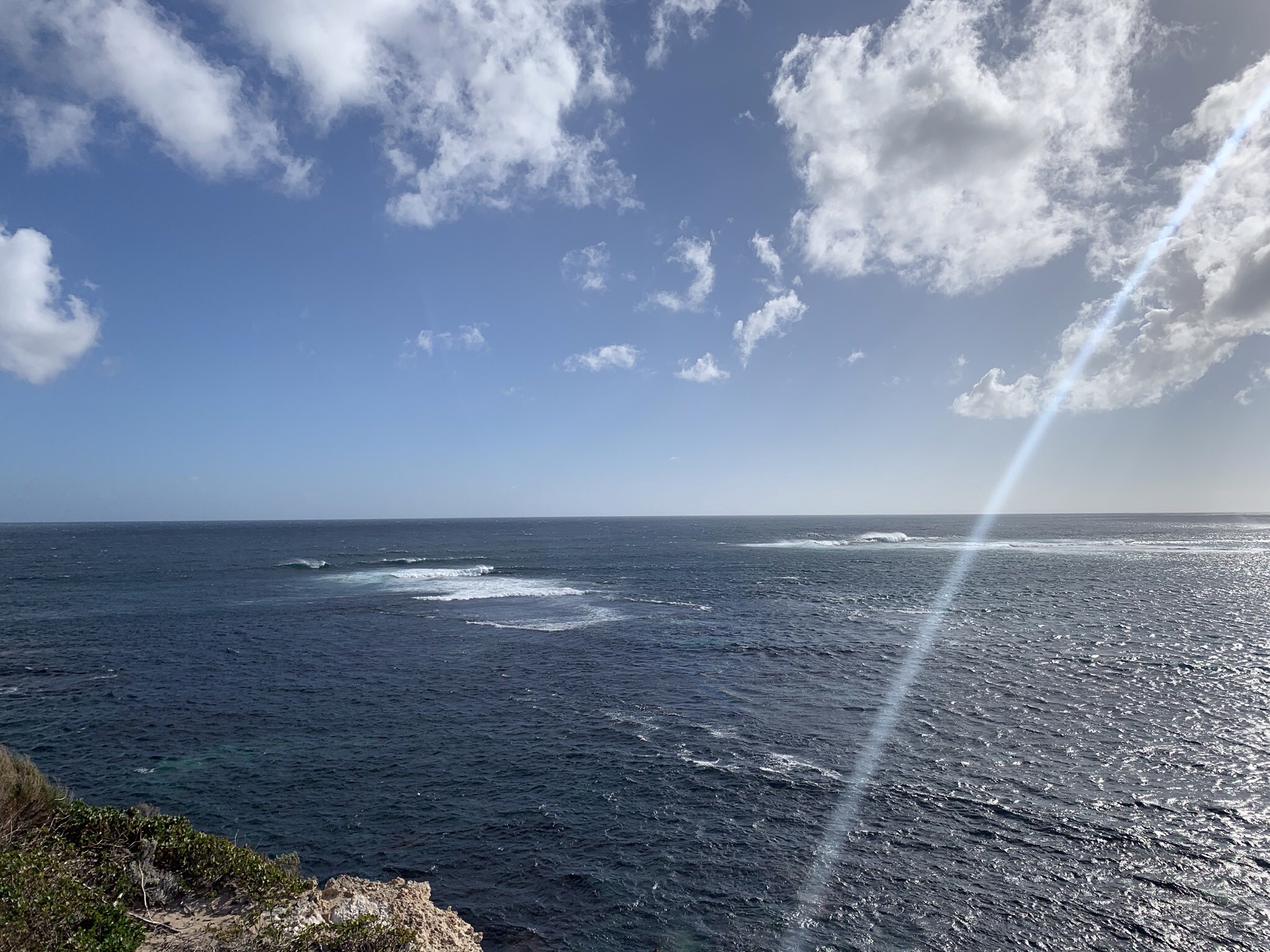 We had lunch overlooking the beach at the White Elephant cafe accompanied by several seagulls keen to get hold of our food! The photos belie the intensity of the wind – cutlery, food and umbrellas all went flying at one point or another. Owing to Covid restrictions, food was takeaway only at that point though I think you can probably dine in now as restrictions have eased further here in WA since then.