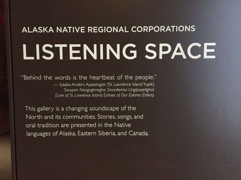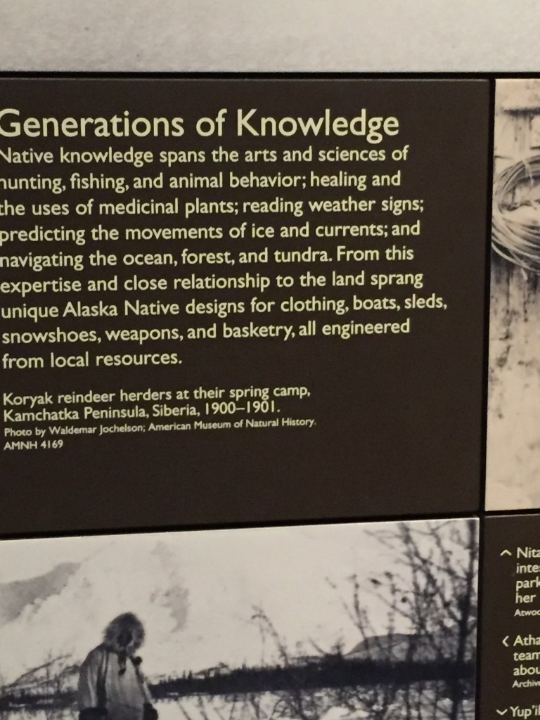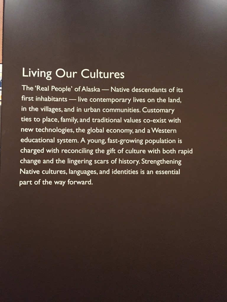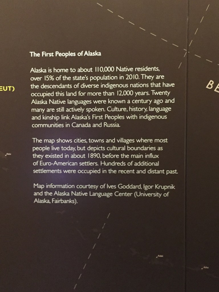 The Anchorage Museum is a fascinating exploration of the many facets of history, daily life and the rich cultural history of the First Nations People that have helped to shape this part of the world. There are art collections, interactive exhibits and the exploration of themes such as the environment and the effects of climate change. We lost ourselves there for a few hours – below is a visual tour, which is the best way to illustrate a small selection of the available exhibits. Please excuse the poor quality of some photos – the challenges of being indoors with tricky lighting!