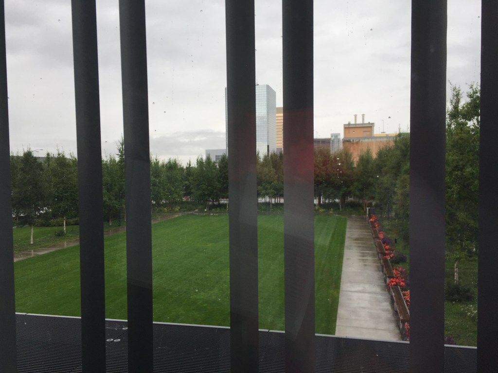 We arrived in the largest Alaskan city, Anchorage, (note Juneau is in fact the capital) late evening on a rather damp cold August day. We had booked into the Lakefront Hotel Anchorage for a couple of nights, which bills itself as “A wilderness lodge in the heart of the city”. Certainly it felt very rustic with wooden panelling and a cosy homely atmosphere slightly spoiled for me by the decorative features on the walls of a plethora of stuffed animals unfortunate enough to have got in the way of the local hunters.