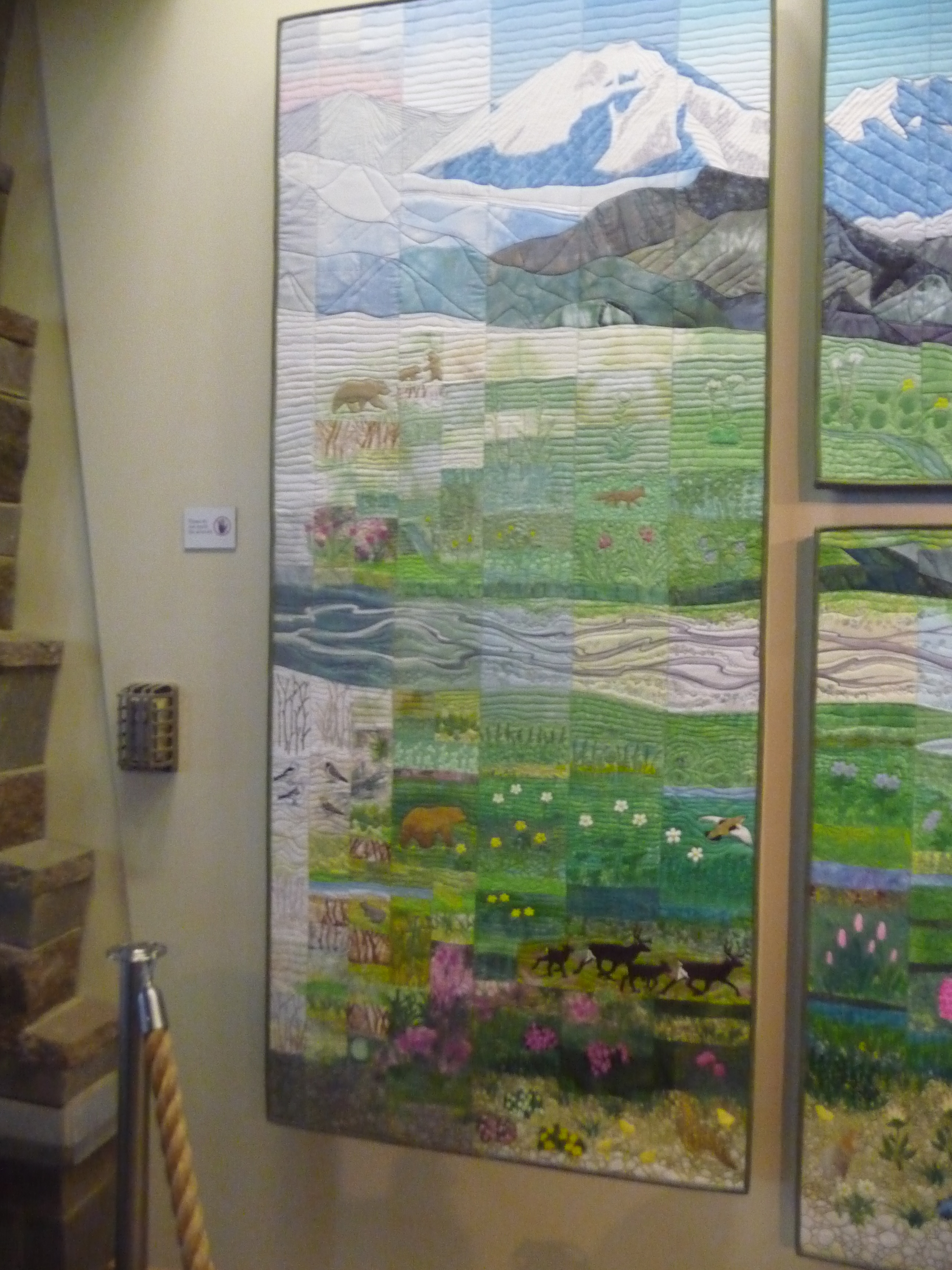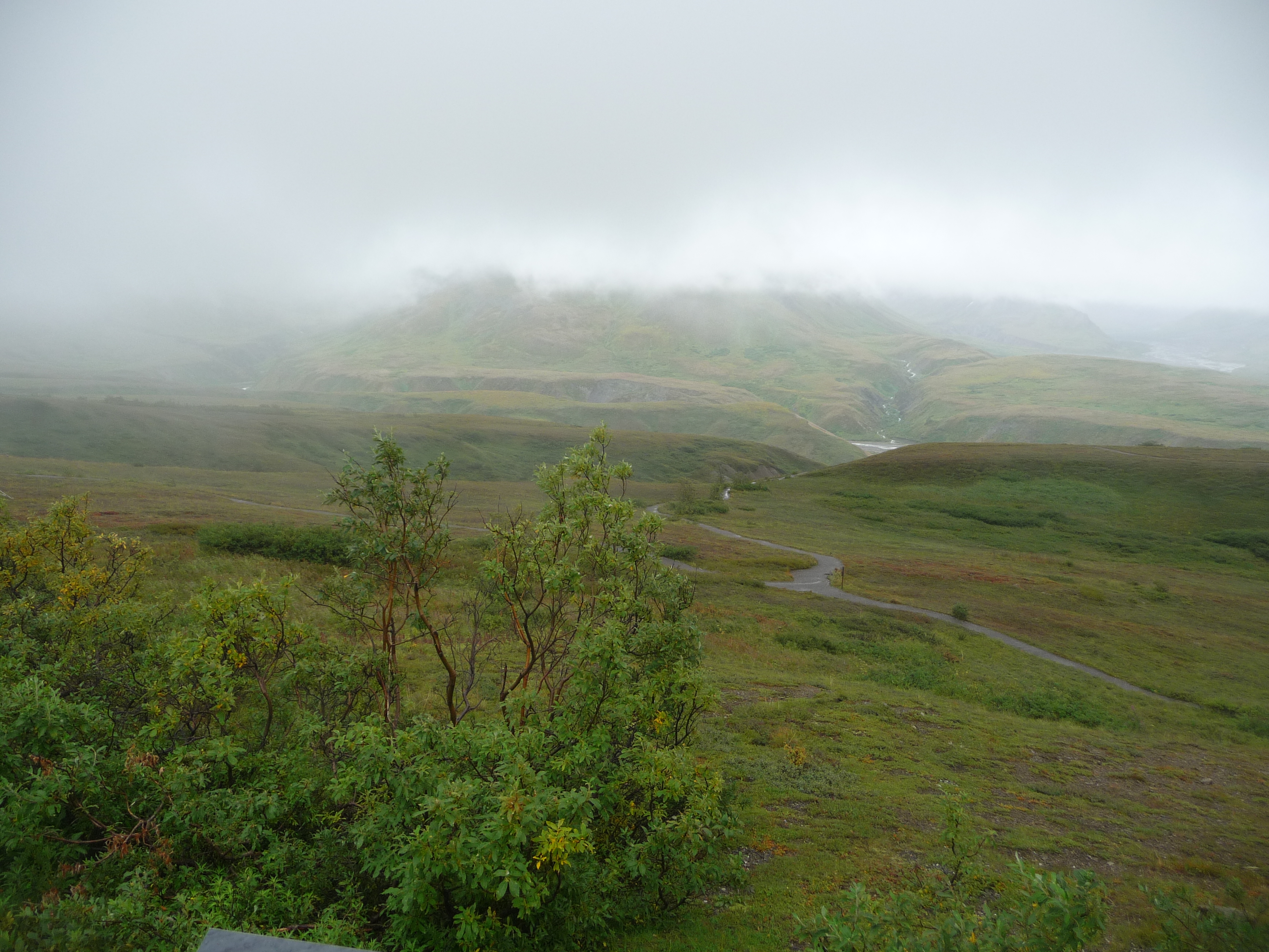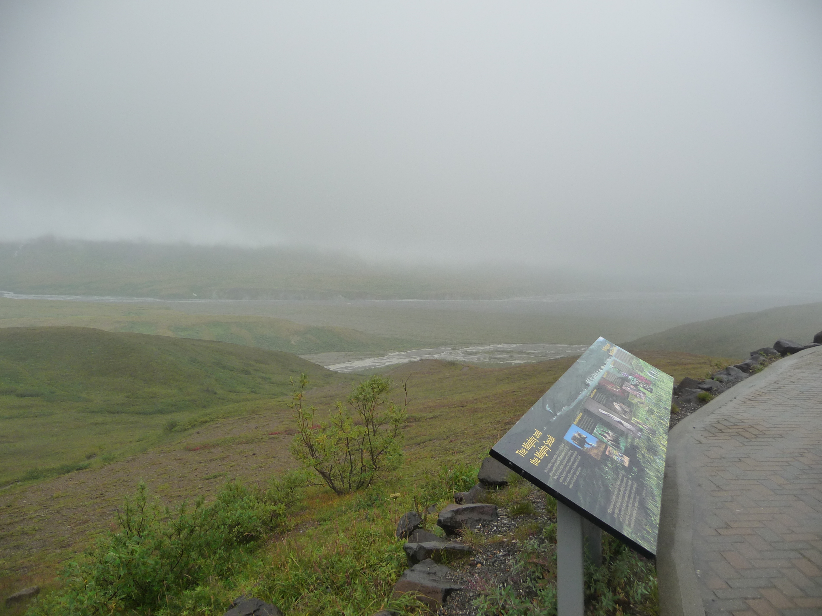 The Centre houses some artwork inspired by nature, information about the environment and wildlife and there are also opportunities for hiking tours guided by local rangers. I don’t remember seeing a cafe there as such but I do recall getting some hot drinks, which helped to warm us up as it was very cold and damp outside. We were certainly not going to get views of the Denali mountain peak that day!