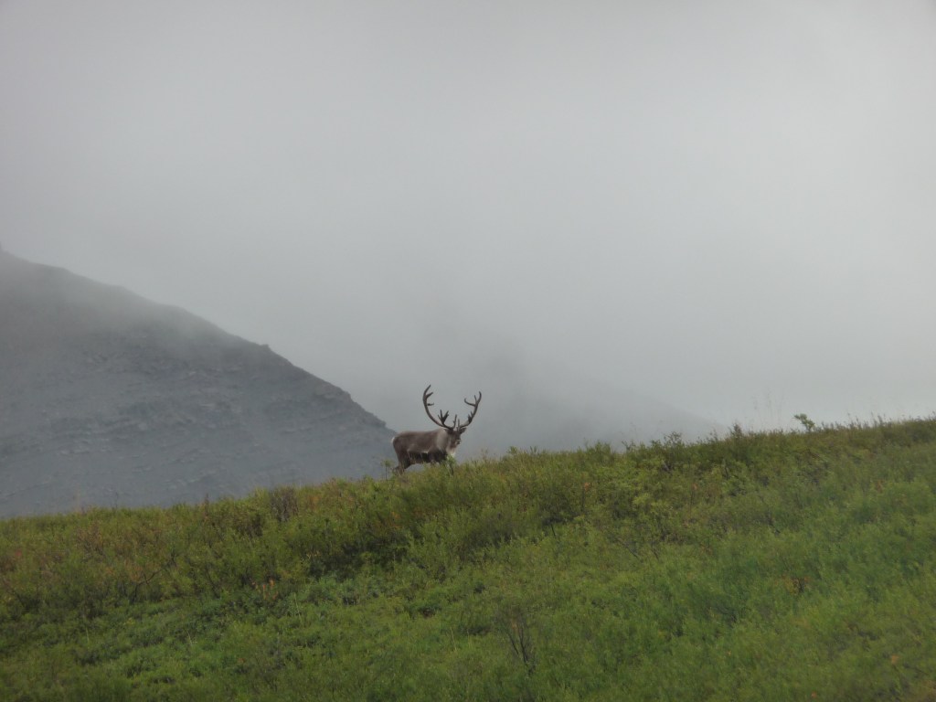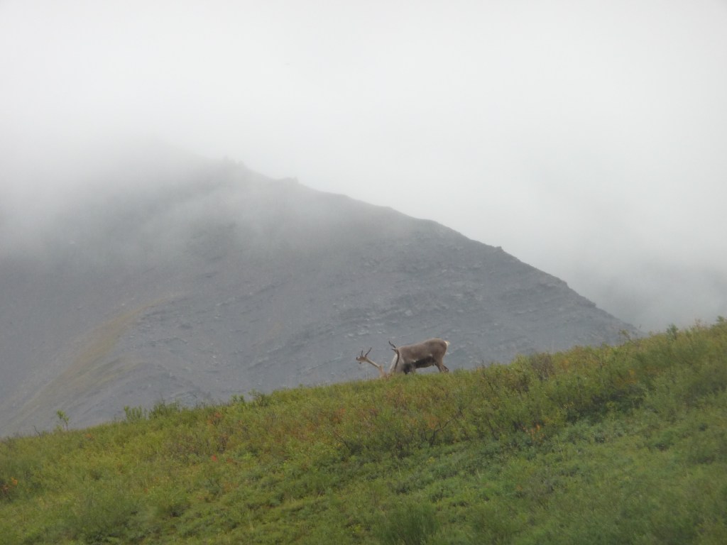 First out of the mist came the caribou – the close up photo was taken by our friends so I can’t take credit for it!