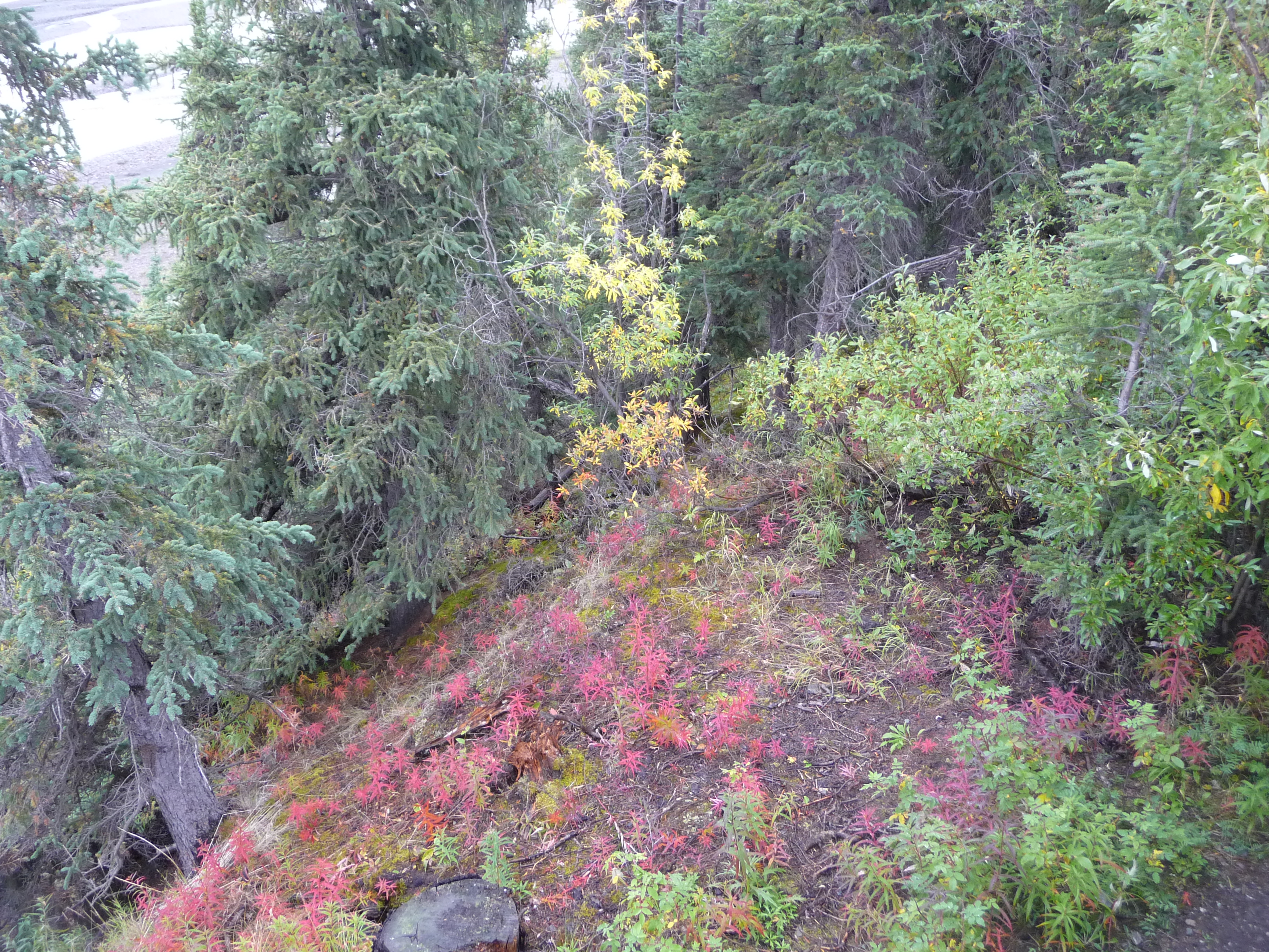 The next day we left the Denali area and headed off to drive further north to our last stop in Alaska, Fairbanks. By the side of the road I spotted what looked like a large horse – we turned the car around, came back and there in a small clearing at the side of the road was a mother moose and her calf. The calf quickly took fright and scampered back into the coverage of the dense forest but “mum” stayed around for quite a while, seemingly unperturbed by our presence (at all times of course we stayed in the car!).