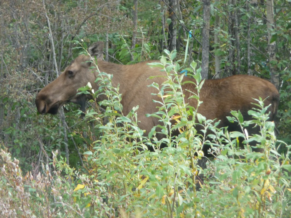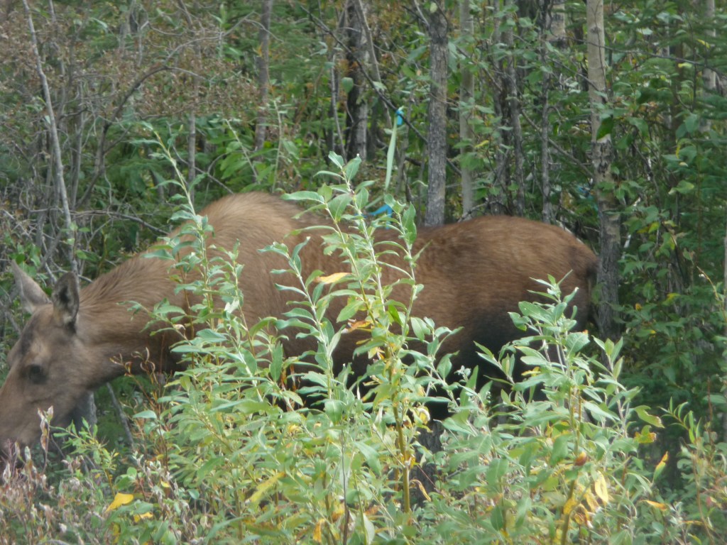 We had managed to see Grizzly bears, Dall sheep and caribou but as yet no moose on our Alaskan trip apart from one at the side of the railway track as we sped along from Seward to Anchorage (and I only got to see a brief glimpse).