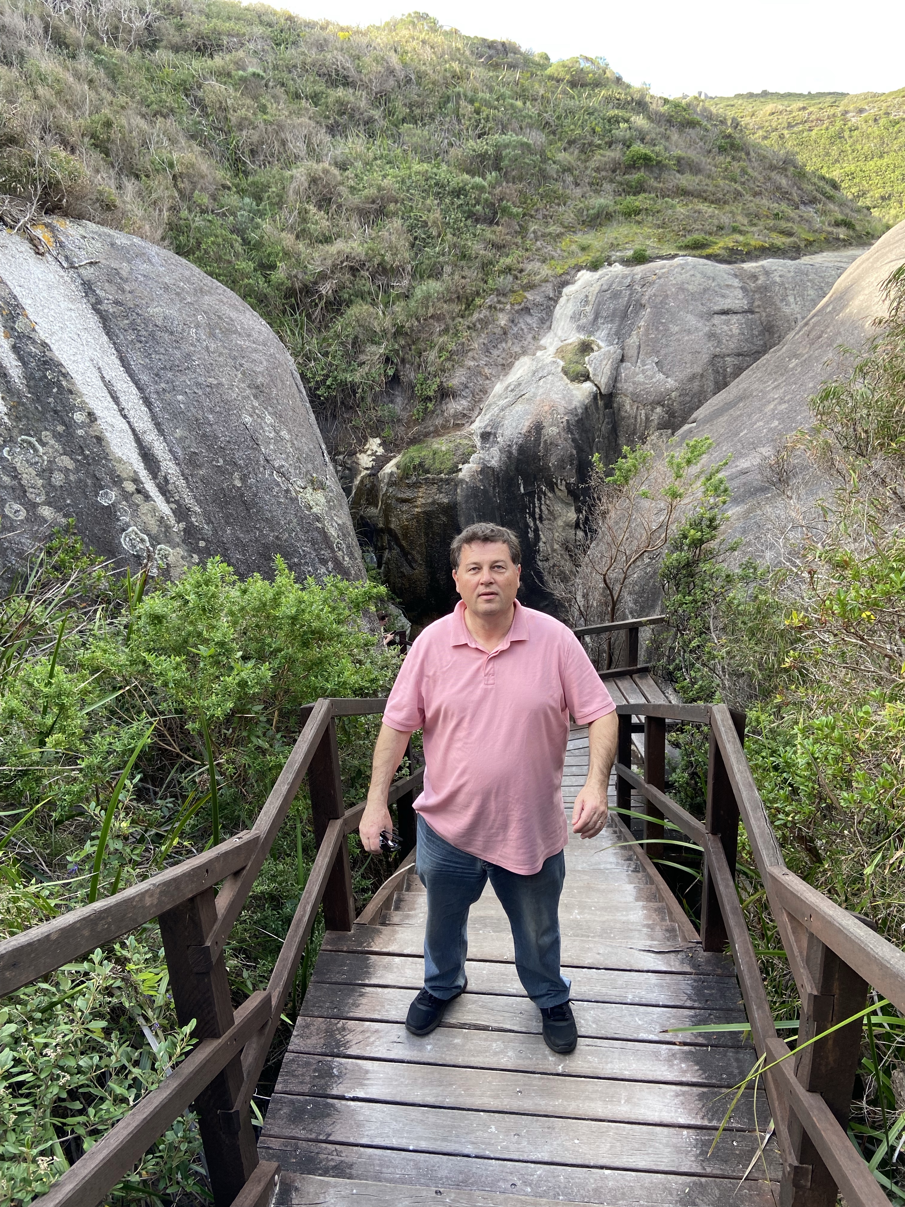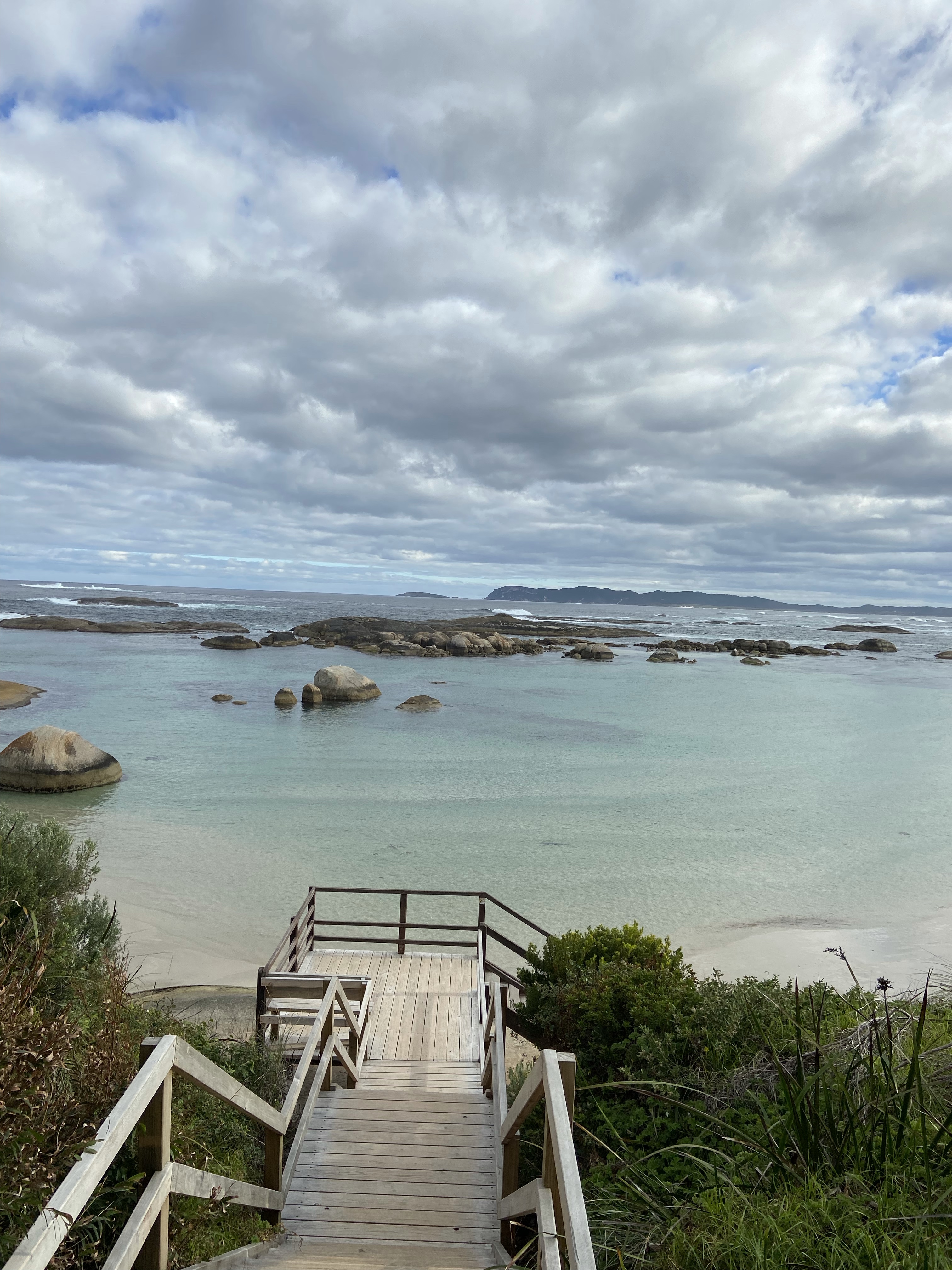We walked along the path to Elephant Rocks where you can climb down a staircase through a chasm in the rocks to access the cove below.