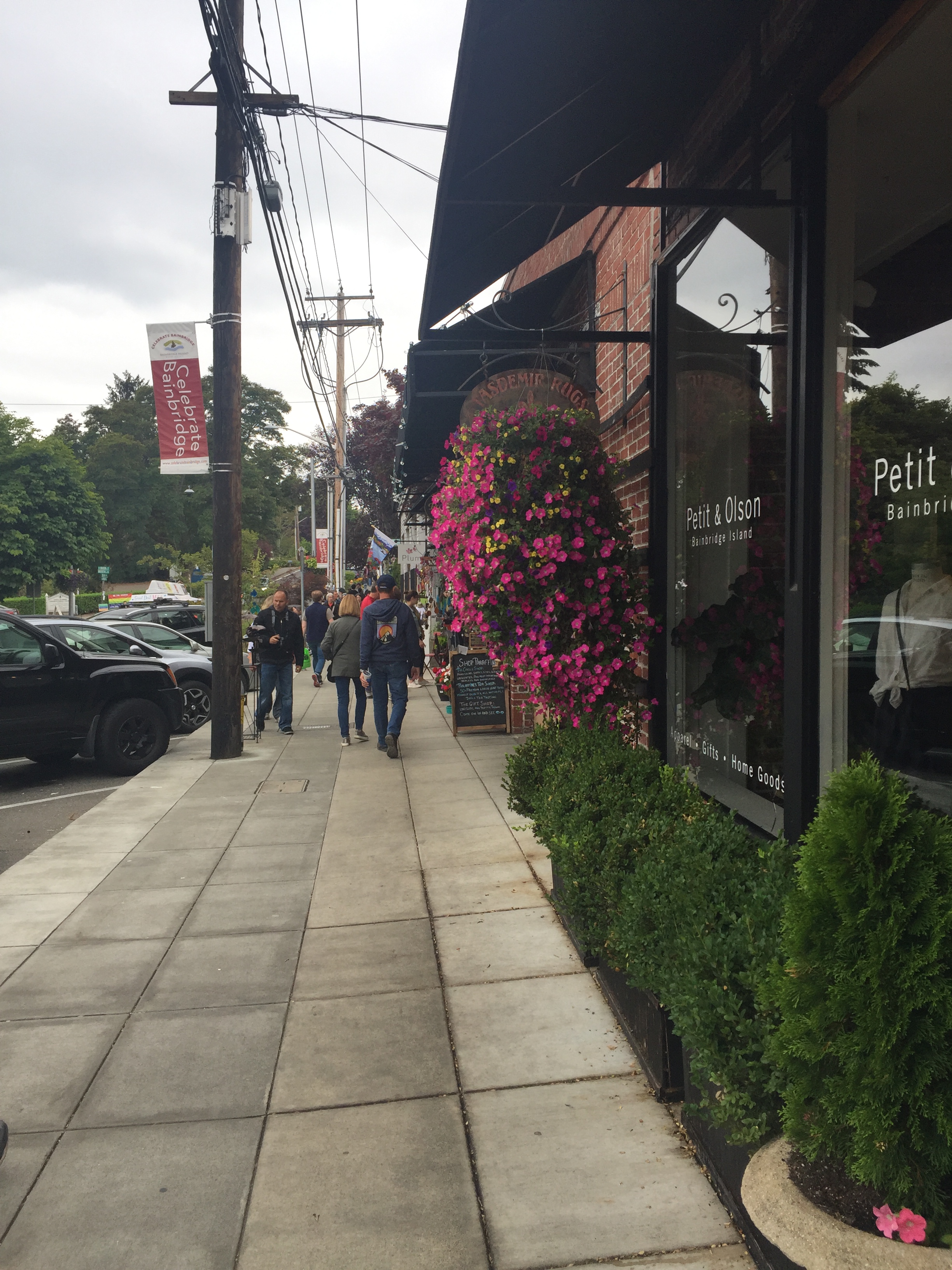 The island is quite small (27 square miles in land area) and has a number of different attractions. There are popular walking and hiking trails in particular the Grand Forest and the Fay Bainbridge Park and Campground in the north east of the island, which is a beautiful marine park overlooking the Puget Sound. Since I was feeling quite unwell and feverish we couldn’t do any of the walking trails – it took all my energy to walk the few minutes from the ferry terminal to the “Main Street”, which as its name suggests is the centre of town. I did find a good guide to the “12 Top-Rated Things to Do” on Bainbridge Island here.