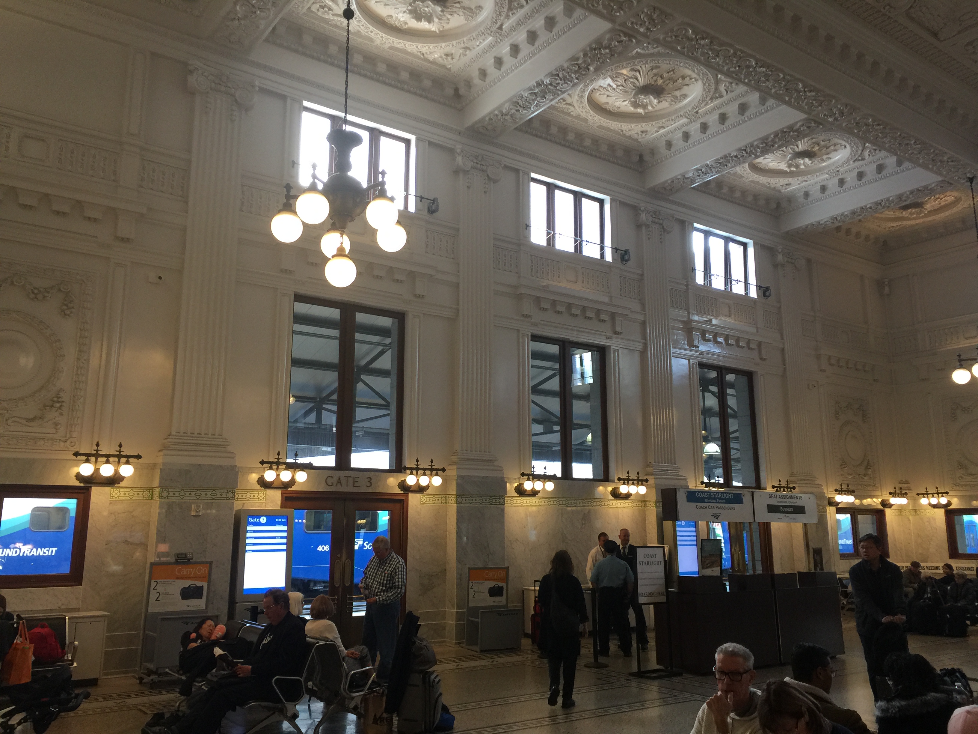 King Street Station Seattle is an impressive building which deserves a mention – I’ll finish with a few photos of the station and a couple of slightly blurry ones of the journey up the coast back to Vancouver (from where we flew back home to Perth).