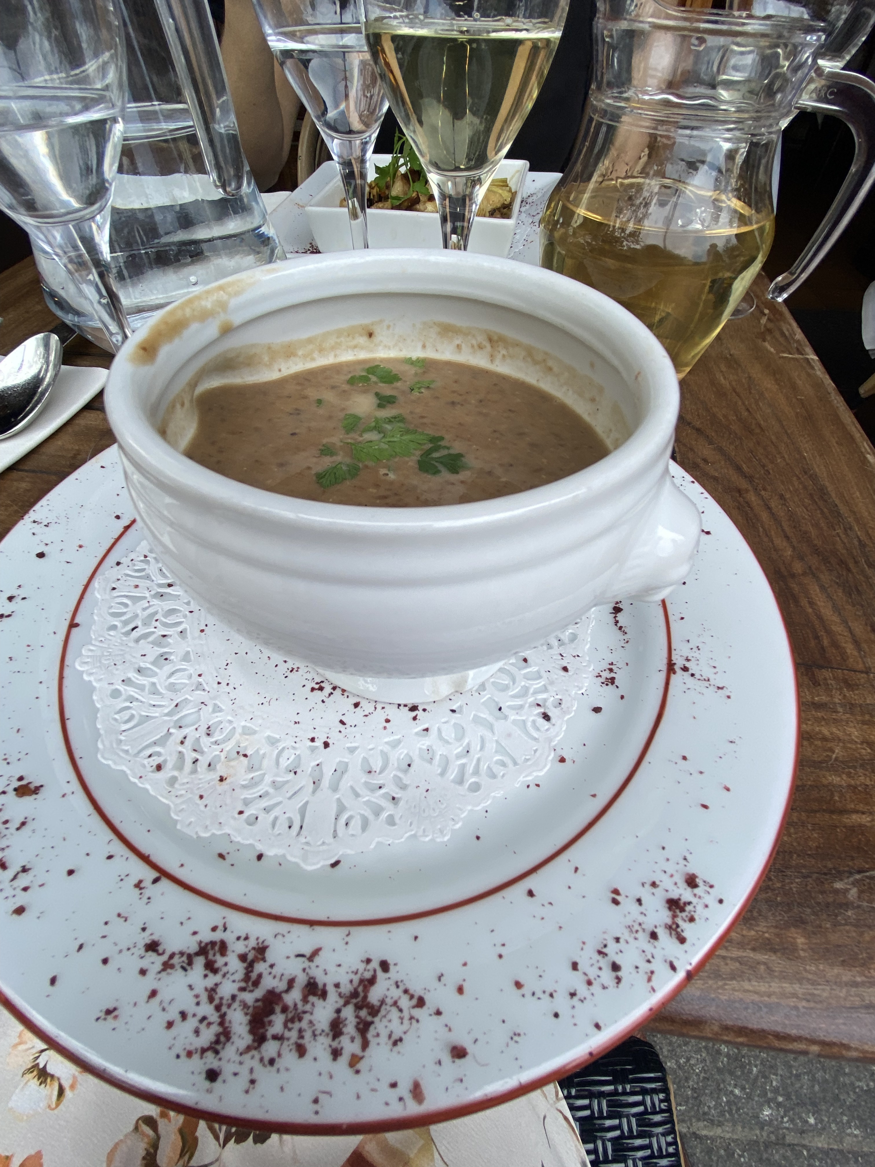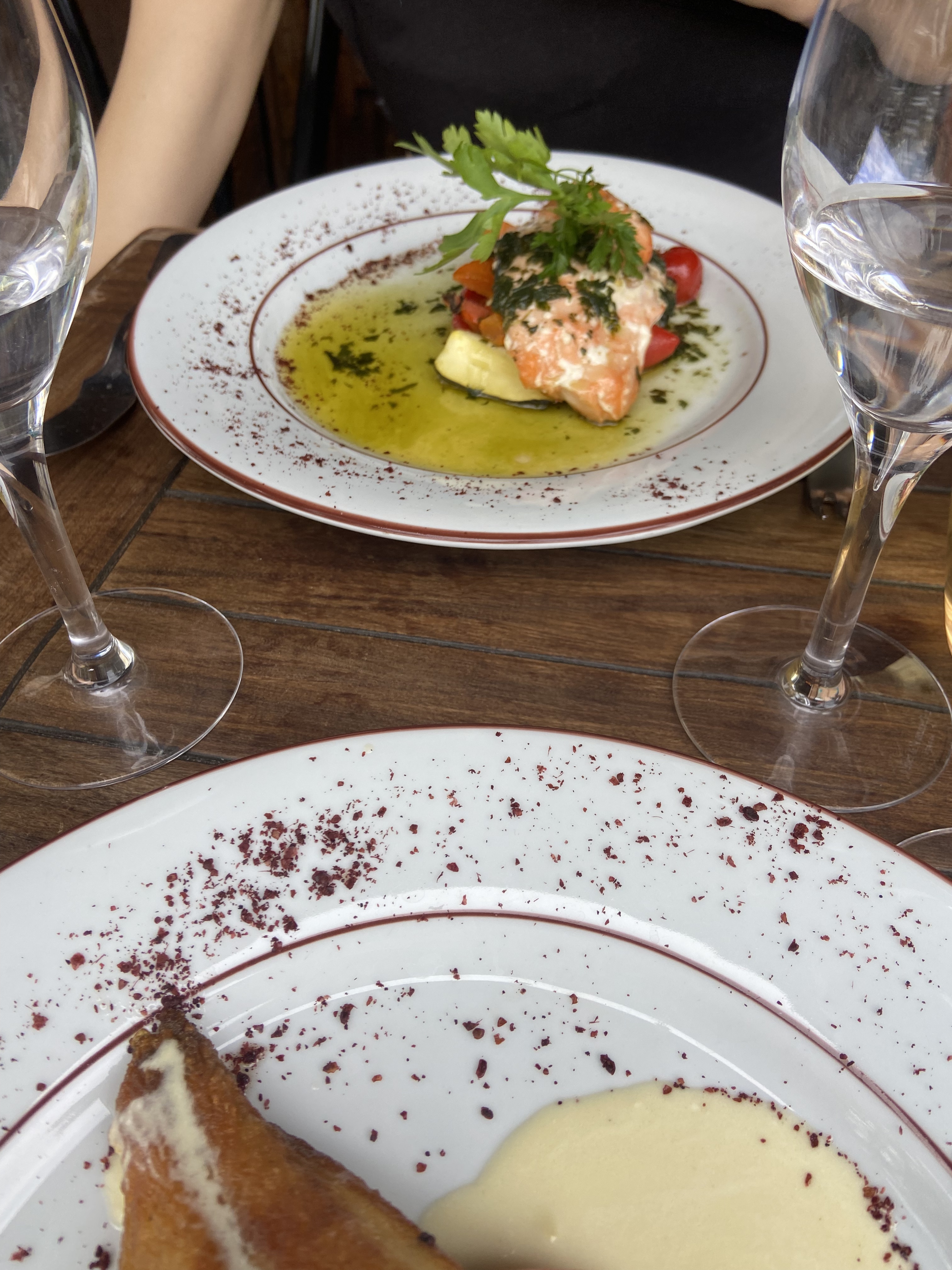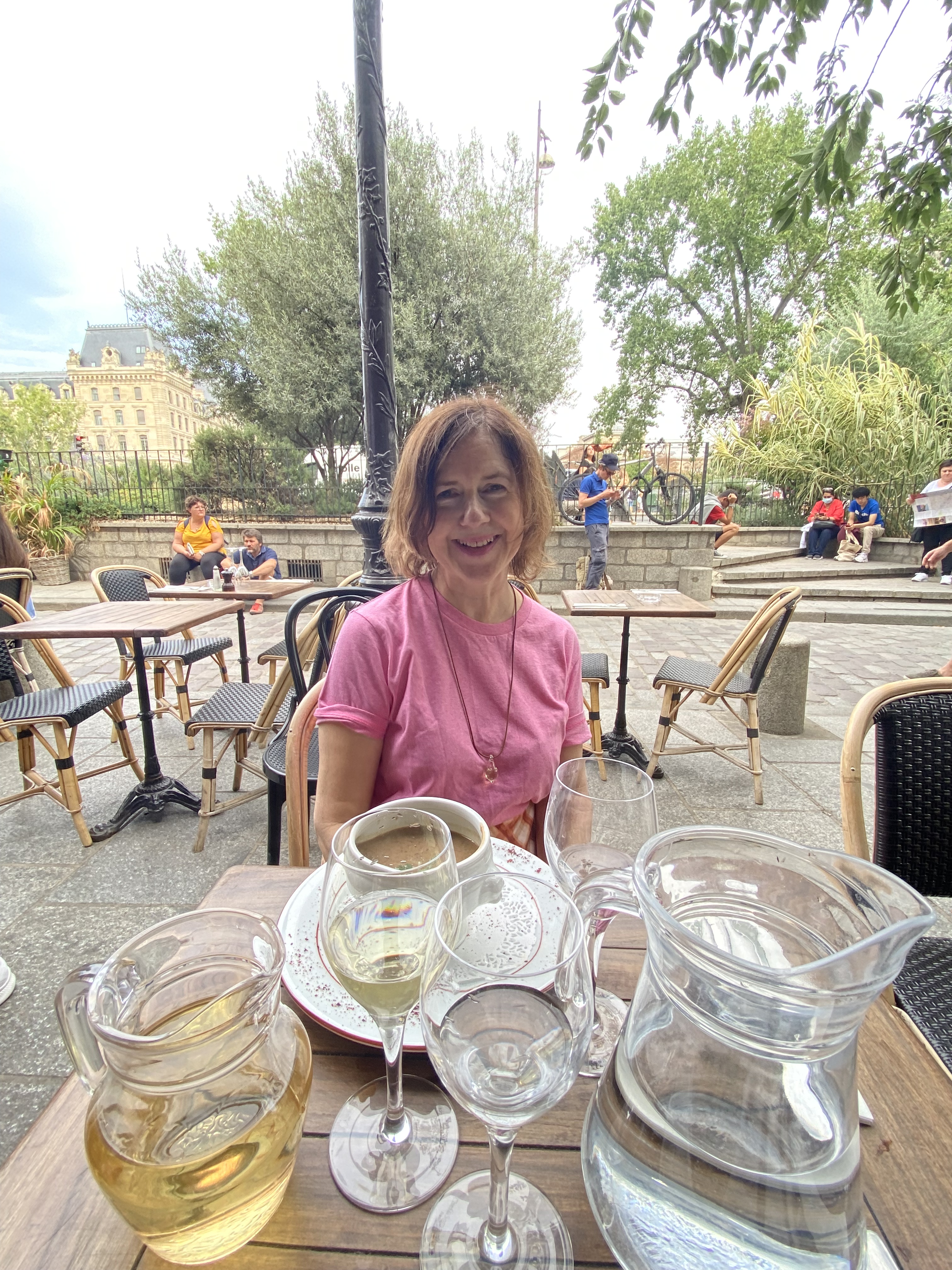 Right on the cobbled street by the River Seine, it was the perfect spot for people-watching, chatting and enjoying the superb French cuisine. We ordered a carafe of the house white wine – a lovely crisp chablis perfect for a warm day.