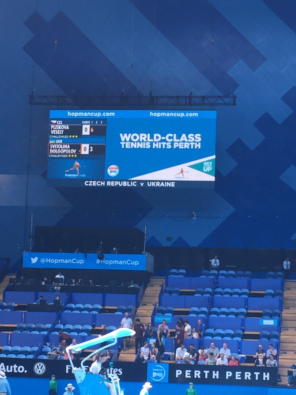 Hopman Cup Perth January 9, 2016 by rosemaylily2014 | 0 comments World class tennis at the Hopman Cup at Perth Arena Share this: Click to share on X (Opens in new window) X Click to share on Facebook (Opens in new window) Facebook Click to share on Pinterest (Opens in new window) Pinterest Click to share on LinkedIn (Opens in new window) LinkedIn Like Loading...
